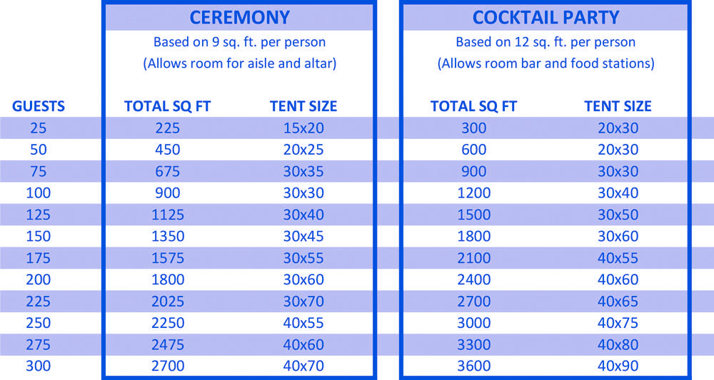 For larger event please call us and we will help with sizes, types of tents and more.